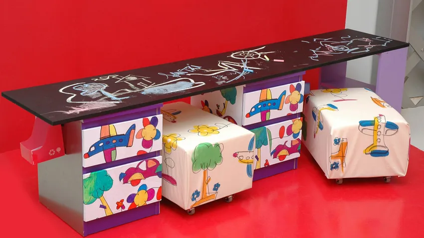 Con materiales económicos podemos realizar un pequeño mueble que se convertirá en un gran regalo. Será su primera mesa de dibujo, en la que podrán pintar con total libertad sin miedo a manchar nada. Tendrán una encimera de pizarra para dibujar, borrar y volver a dibujar. Esto, que supone un juego divertido para el pequeño, favorece de forma importante su desarrollo intelectual. Y además de dibujar, con esta mesa aprenderán a compartir, ya que está preparada para que puedan usarla de dos en dos.