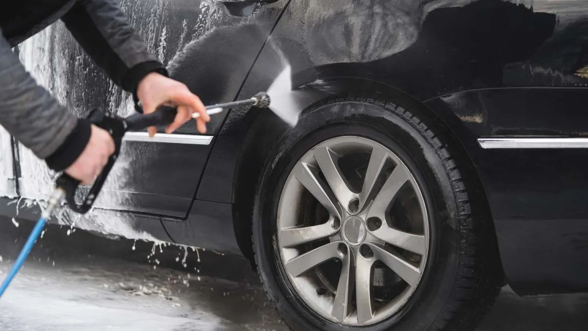 - Enjuague : Utiliza nuevamente la manguera a presión para eliminar todo el jabón y la suciedad. Asegúrate de enjuagar bien todas las partes del coche, incluyendo los bajos y los neumáticos.