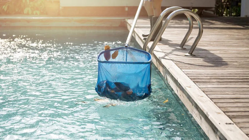 Primero, con la ayuda de una pala tipo red o malla retira de la superficie del agua todas las hojas e insectos muertos. Si tienes árboles frutales en tu jardín, asegúrate de que no haya ningún fruto en el fondo de la piscina. Lo importante de este paso es asegurarnos de que no queda nada sólido en la base de la alberca.