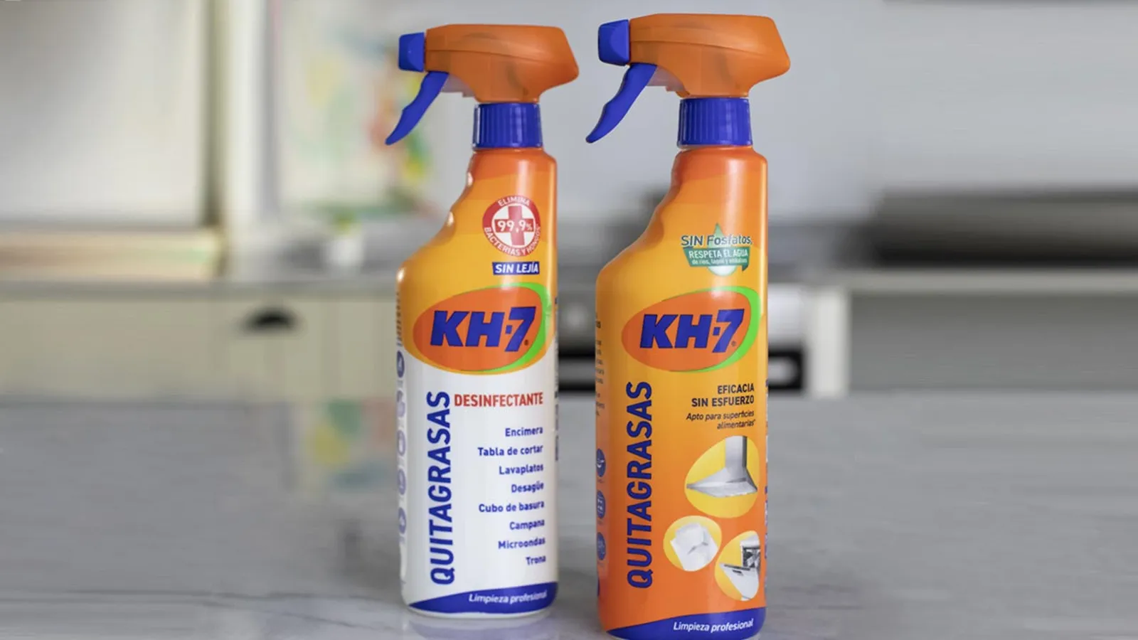 El resultado es el KH-7 Quitagrasas Desinfectante. Si hasta ahora asociábamos los productos de limpieza desinfectantes con la lejía, el KH-7 Quitagrasas Desinfectante sin lejía llega para romper las reglas. Con él conseguirás eliminar el 99,9% de las bacterias, virus encapsulados y hongos de cualquier rincón de la casa.
