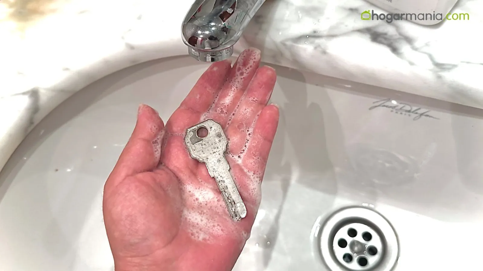 La forma más sencilla para limpiar las llaves de casa es introduciéndolas en un bol con agua caliente y jabón de platos. Esperamos a que el agua se temple y empleamos un cepillo de dientes para arrastrar la suciedad incrustada.