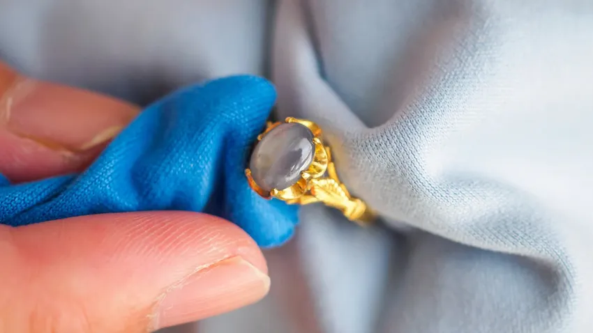 Finalmente, coloca las piezas de oro sobre un paño de microfibra y púlelas con delicadeza con la ayuda de una gamuza. Antes de guardarlas, asegúrate de que están completamente secas.