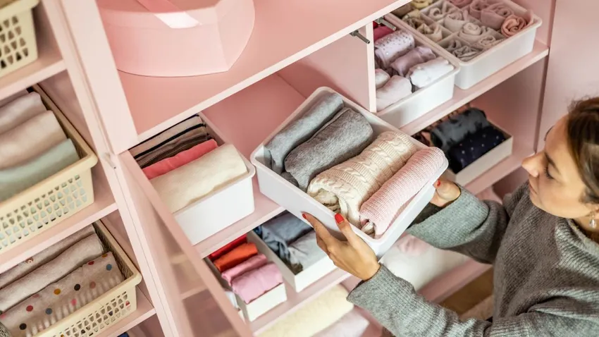Y ahora vamos con uno de los puntos más importantes para una organización exitosa: ¿dónde colocamos cada organizador? Una buena estrategia es colocar los organizadores de tela más pesados (los que contienen pantalones y jerséis) en las baldas intermedias o bajas. Así, cuando vayas a sacarla y seleccionar una prenda, será más sencillo.