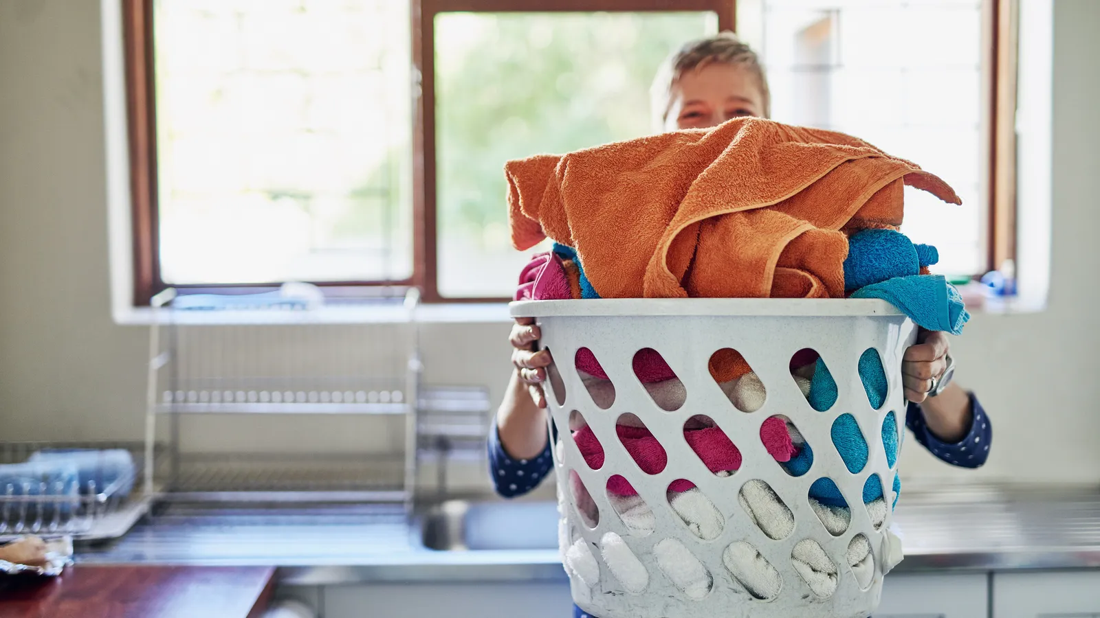 2.Implica a tus hijos en la colada. Esto es algo que pueden hacer los niños de cualquier edad. Pueden ayudar a clasificar la ropa en blanca y de color, pueden meter una carga de ropa dentro de la lavadora, pueden levar su ropa directamente a la cesta de la ropa sucia cuando se duchan, pueden clasificar calcetines, pueden llevarse la ropa doblada a su cajón... Hay muchas cosas que pueden hacer.