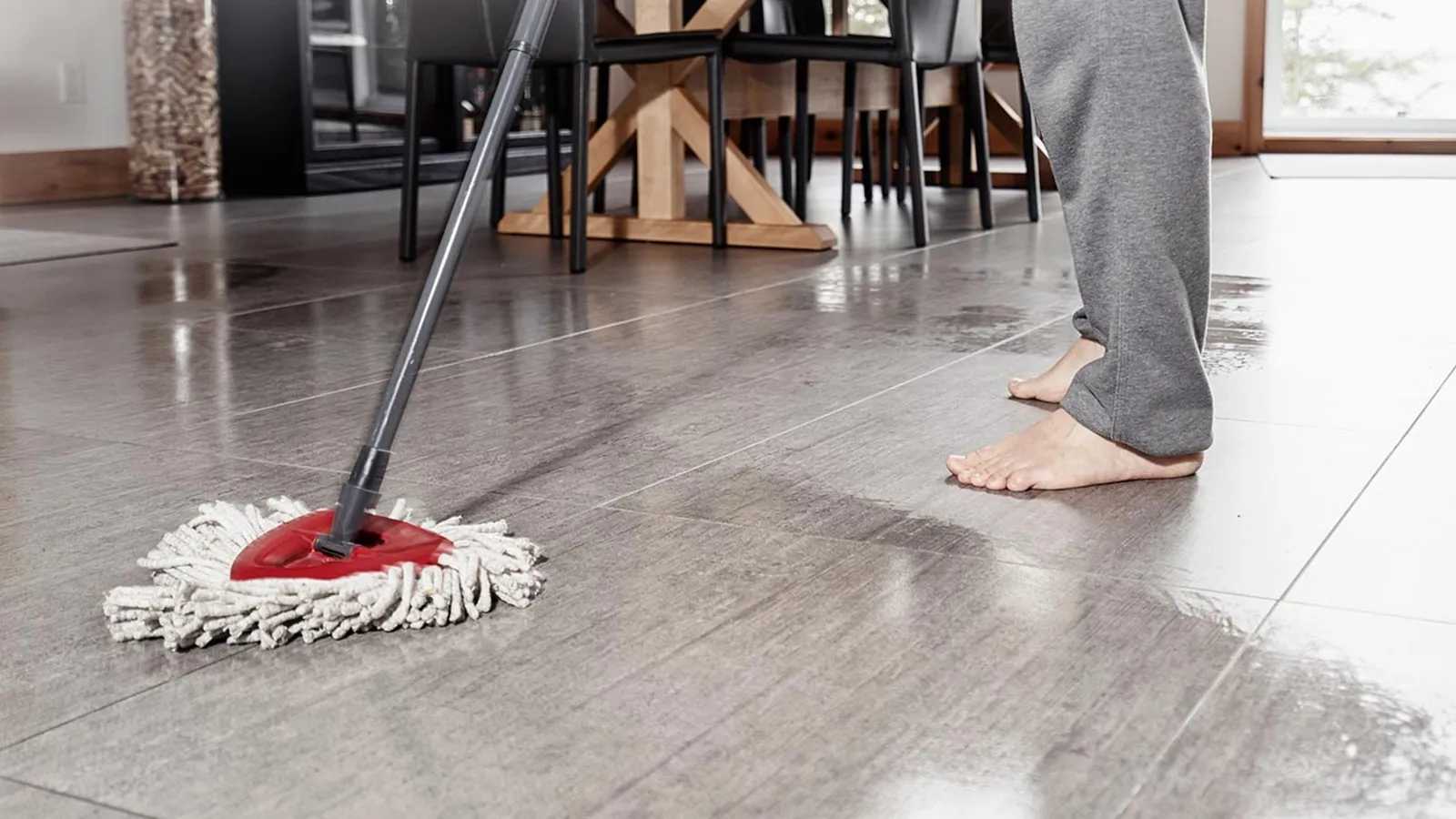 Es importante que no queden restos de detergente en los suelos porcelánicos, por lo que si es necesario, acláralo con una segundo fregado escurriendo al máximo la fregona.