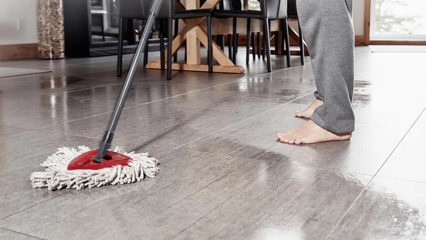 Para esta primera limpieza, lo mejor es que friegues el suelo porcelánico recién instalado solo con agua templada y una fregona suave, mejor si es de microfibra.