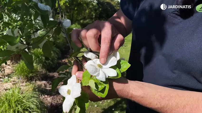 Las brácteas del cornus son de un color blanco muy puro, redondeadas, superpuestas y mucho más resistentes que la flor. Eso permite que sea más longeva e intensa.