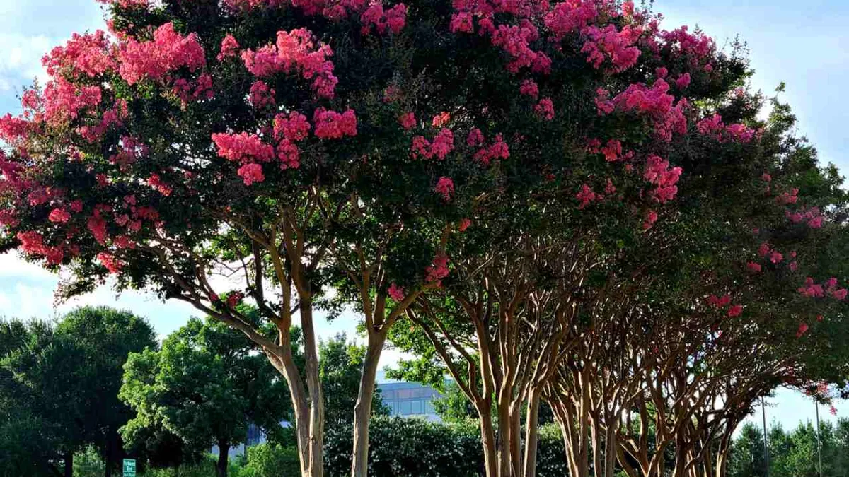 El árbol de Júpiter (Lagerstroemia indica) es un pequeño árbol ideal para jardines compactos y calles estrechas, alcanzando hasta 5 metros de altura.