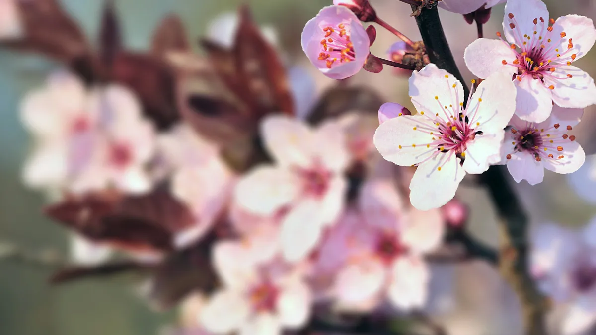 El cerezo de flor destaca por sus hojas, de color bronce al principio y verde oscuro después, y sus flores blancas o rosadas.