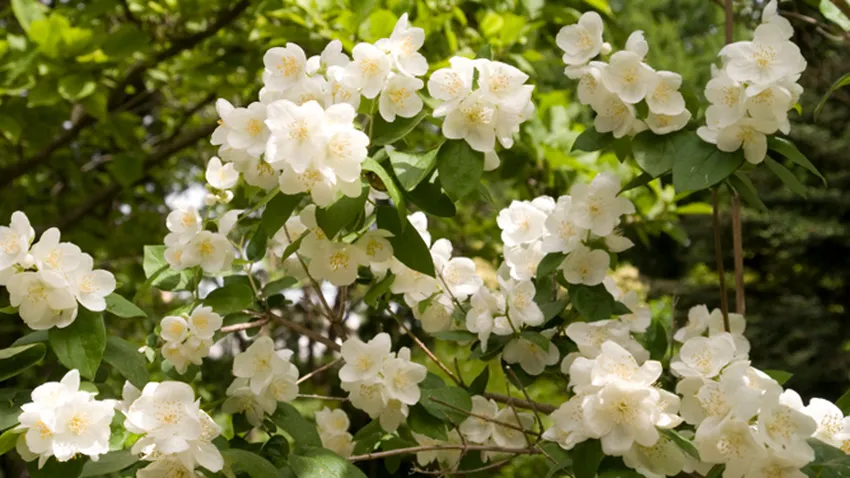El celindo o filadelfo es un arbusto rústico de fácil cuidado con unas espectaculares flores de un blanco puro muy olorosas.