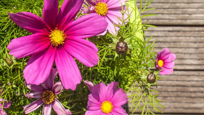 El cosmos necesita poco riego, lo que lo hace ideal para un jardín de bajo mantenimiento. En este caso, es mejor quedarse corto que pasarse, porque el exceso de agua puede provocar podredumbre.