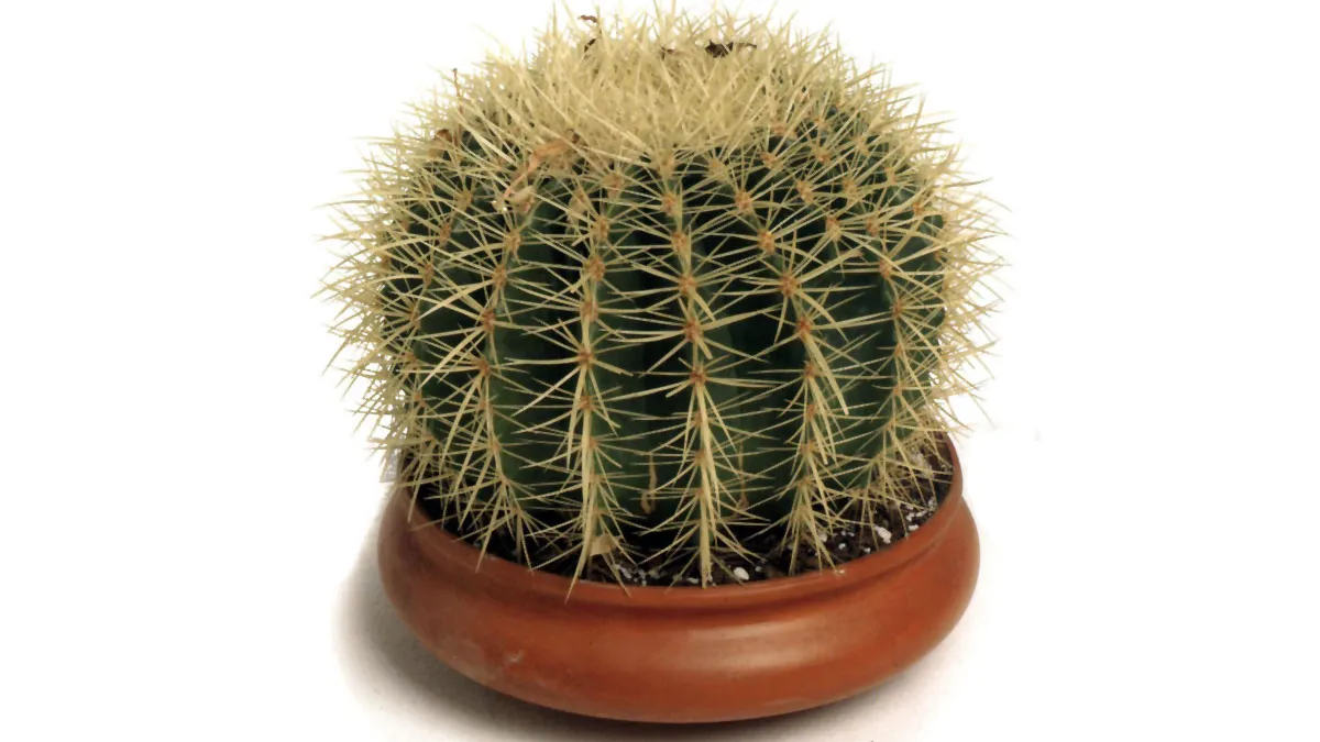 El asiento de la suegra o cactus echinocactus Grusonii se caracteriza por su forma esférica con duros y largos pinchos.