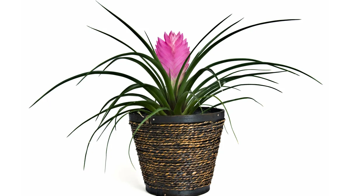 La tillandsia o clavel del aire es una planta que pertenece a la familia de las bromelias, un género que engloba unas 500 especies que provienen de Sudamérica tropical, Chile, Argentina y del sur de Estados Unidos. Se caracteriza por sus hojas verdes y una sorprendente flor fucsia en su centro.