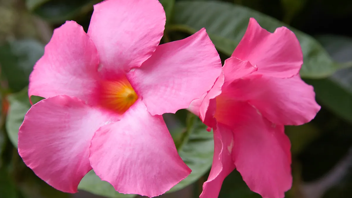 Las diplademias o mandevillas son plantas trepadoras y engloban un amplio grupo de variedades con flores de diferentes colores en forma de trompeta.