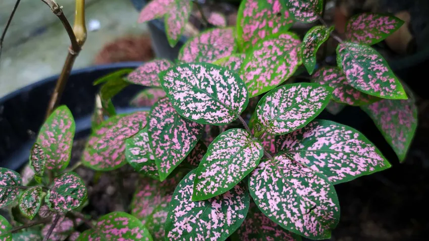 - Hypoestes phyllostachya Pink : Como su nombre indica, se trata de una planta rosa única y llamativa. La tonalidad rosada se combina con manchas verdes, creando una mezcla preciosa. Más sobre plantas rosas