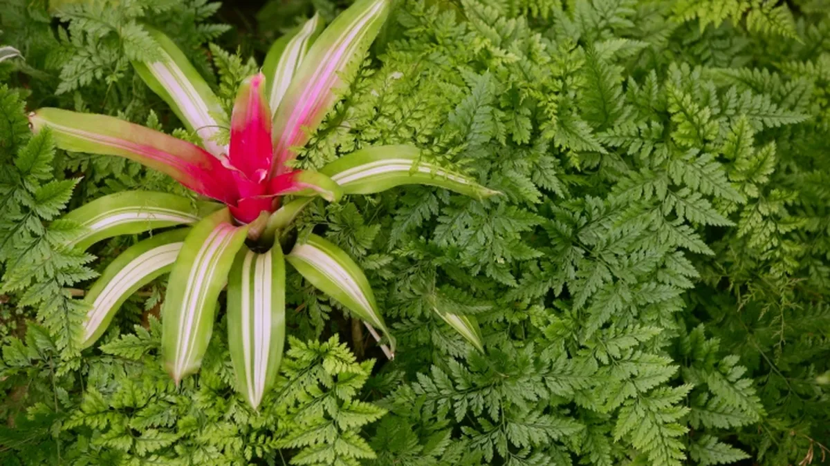 La neoregelia es una bromelia originaria de Brasil compuesta por una roseta de hojas de unos veinte centímetros de altura y cuarenta de ancho.
