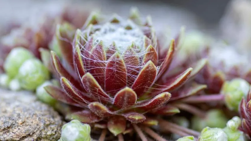 Hoy te presentamos una de las plantas siemprevivas más espectaculares y menos conocidas: la Sempervivum arachnoideum, también conocida como Cobweb Houseleek.