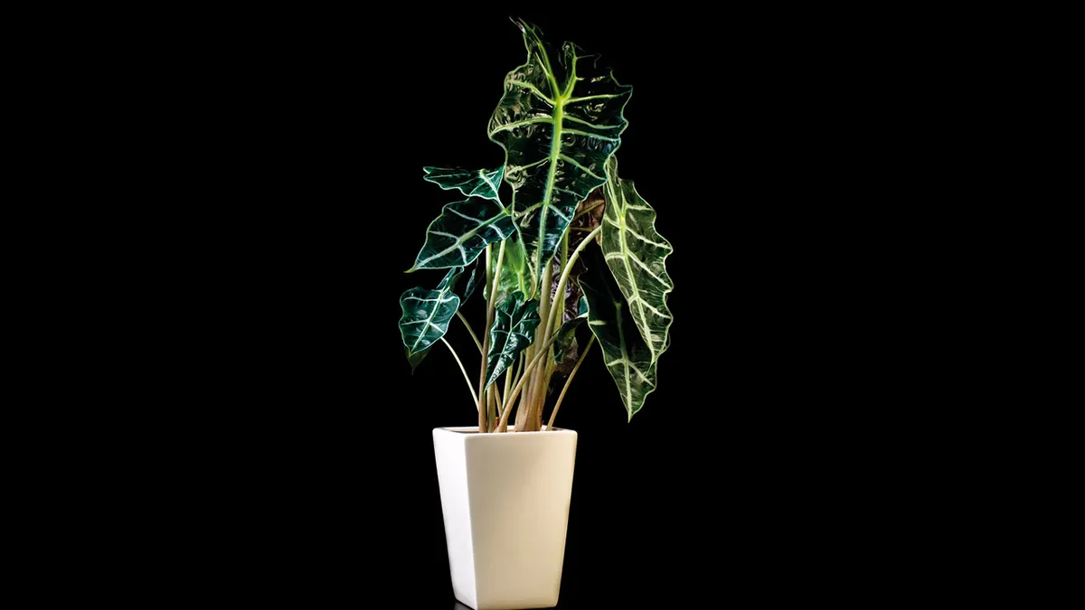 La oreja de elefante mini es una variedad enana de alocasia, muy práctica debido a su porte contenido que no supera los 25 centímetros de altura.