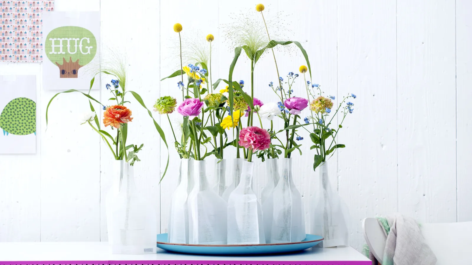 Coloca las flores en un florero limpio con agua limpia del grifo, pero no demasiada, y alimento para flores de bulbo.