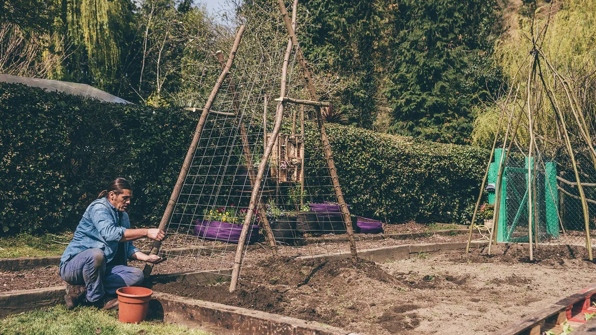 En el briconsejo de jardinería de hoy, vamos a continuar trabajando en la huerta de Karlos Arguiñano. En esta ocasión, vamos a realizar una estructura para guiar a los pepinos y la calabazas tipo Potimarron.