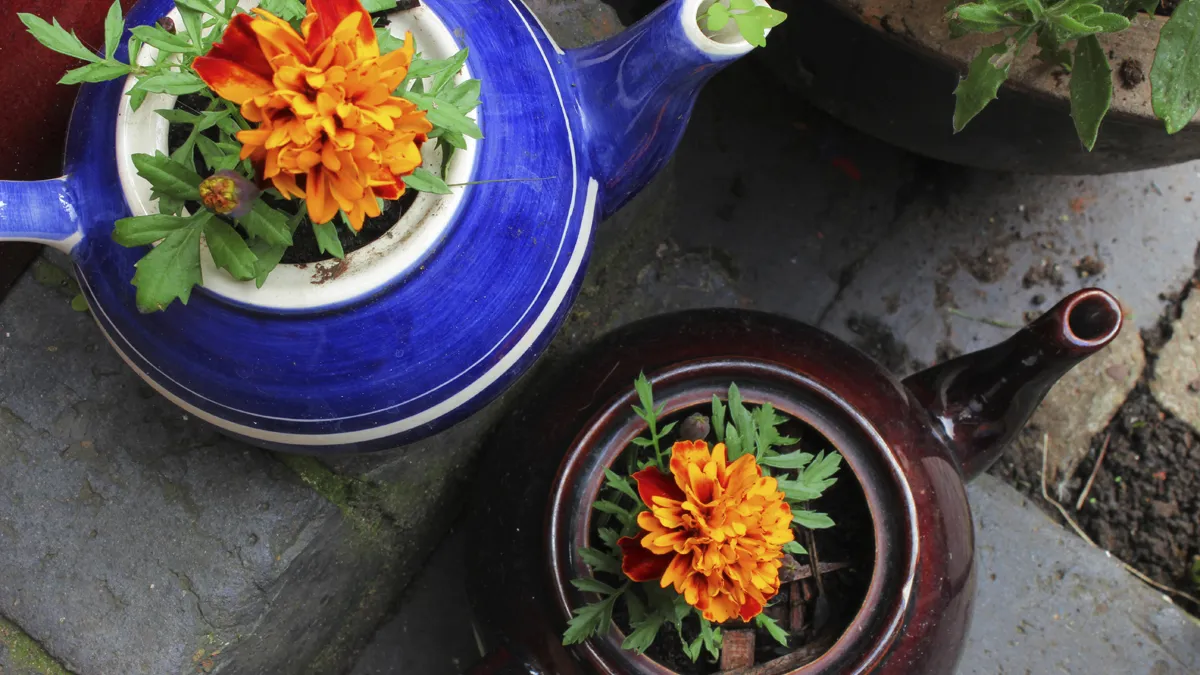 La primera idea que os presentamos es recuperar la vajilla vieja. Puedes reutilizar esas piezas de menaje que van perdiendo el anti-adherente o que se quedan huérfanas: una cazuela que no sirve para nuestra cocina, una tetera sin tapa o una taza sin asa.