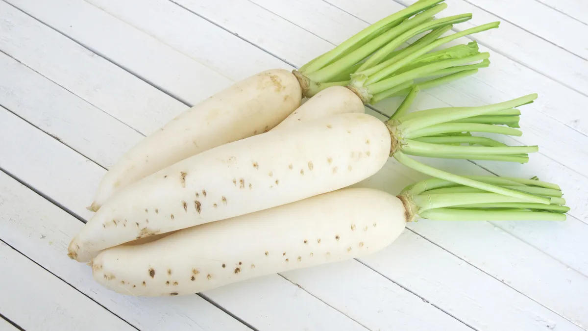 El nabo daikon o japonés es un tipo de rábano de color blanco y se cultiva igual que el resto de los rábanos.