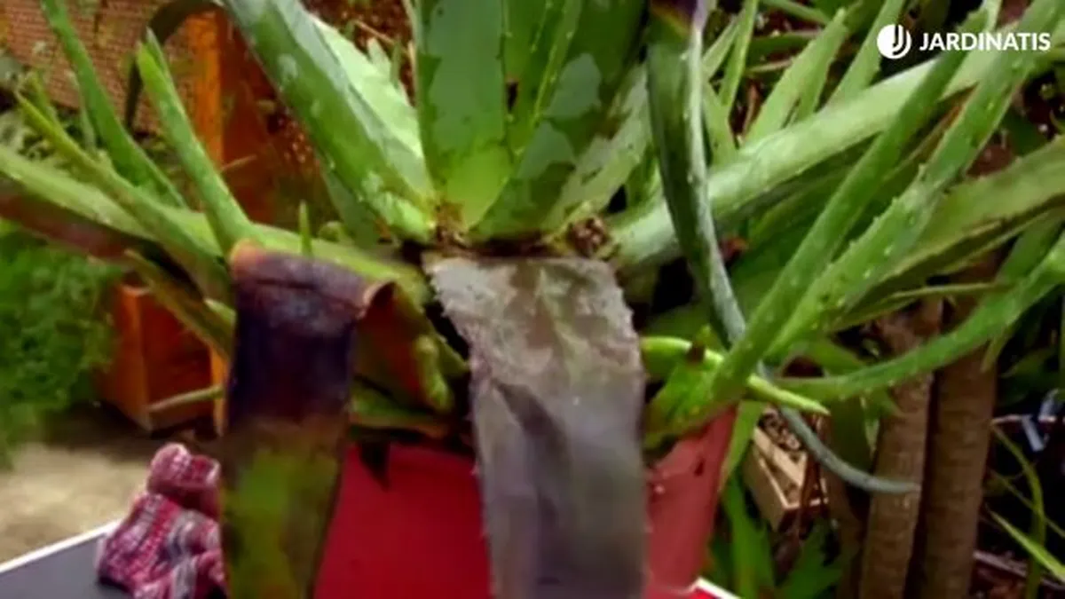 Retirar hojas podridas del Aloe vera (paso a paso en el vídeo de la parte superior)