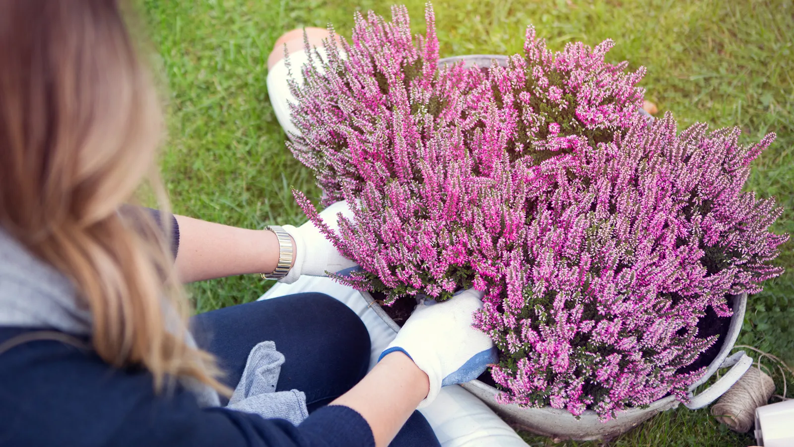 ¡Necesita agua en el plato! Antes de plántalo, saca el brezo y mételo en agua para que se hidrate bien. Y luego, estad atentos de que no le falte nunca agua en el plato. Esas raíces pequeñas necesitan que haya siempre humedad, en cuanto se secan, se queda sin hojas y se muere.