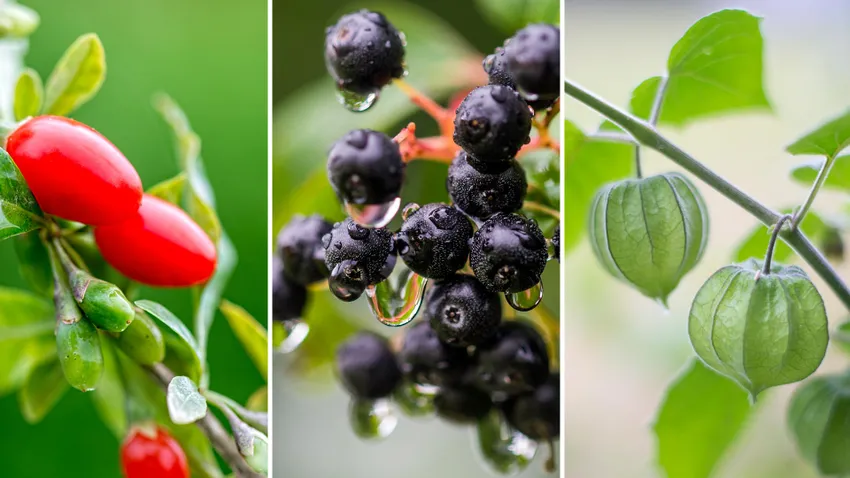 Los frutos rojos y ovalados del goji o Fructus Lycii cuelgan como piedras preciosas de las ramas de este resistente arbusto. Además de su atractivo estético, las bayas están cargadas de antioxidantes, vitaminas y minerales.