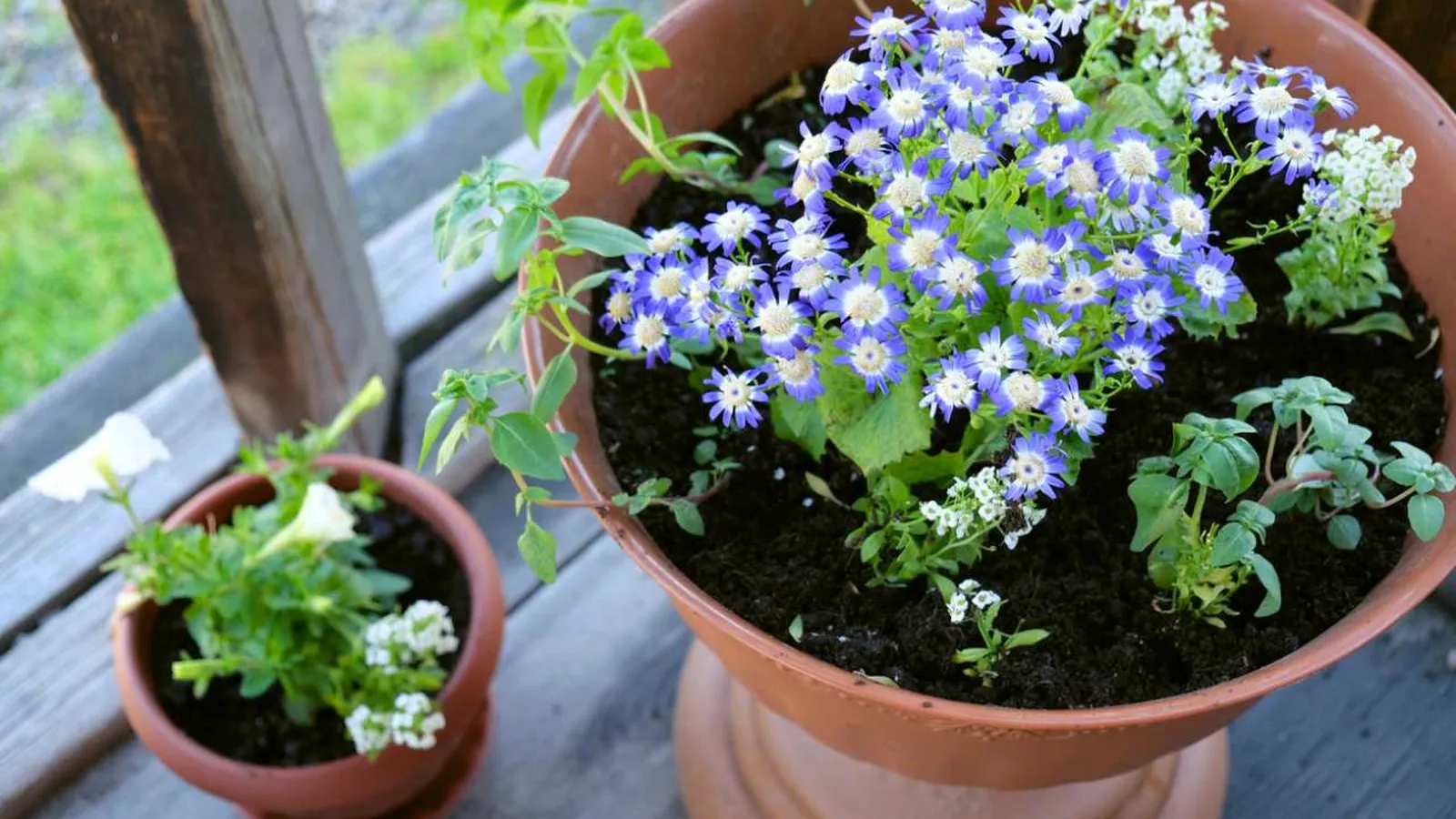 La cineraria híbrida o Pericallis x hybrida (antes conocida como Senecio cruentus) es una planta que florece espectacularmente durante el invierno, aportando colores intensos como azul, morado y blanco a tu balcón.