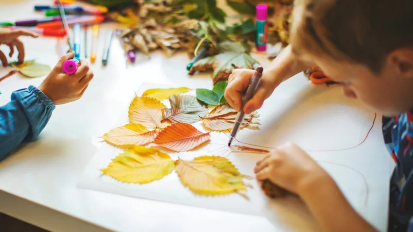 Aunque esta actividad es más común en otoño, cuando las hojas y flores ya están secas, puedes secarlas o prensarlas tú mismo para luego entregárselas a los niños. Si te interesa saber más, te dejamos un montón de ideas sobre cómo pintar y decorar hojas secas en otoño como durante todo el año.