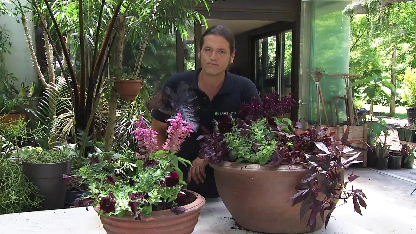 Iñigo nos propone crear esta composición tan bonita en tonos granates utilizando novedades de salvias del mercado. ¡Os va a encantar!