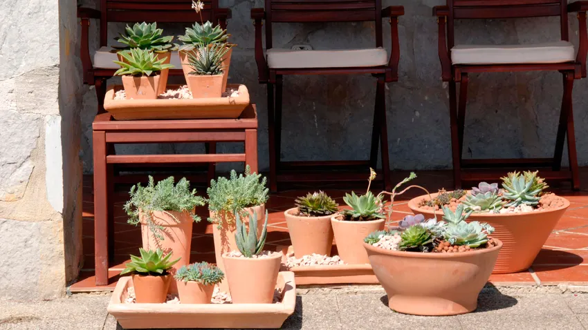 Vamos a crear composiciones en macetas de barro con diferentes plantas crasas como la Echeveria, el Áloe Vera y el Sedum.