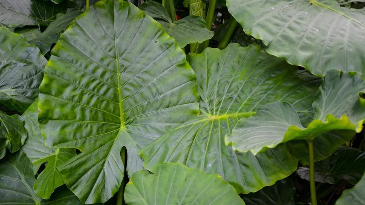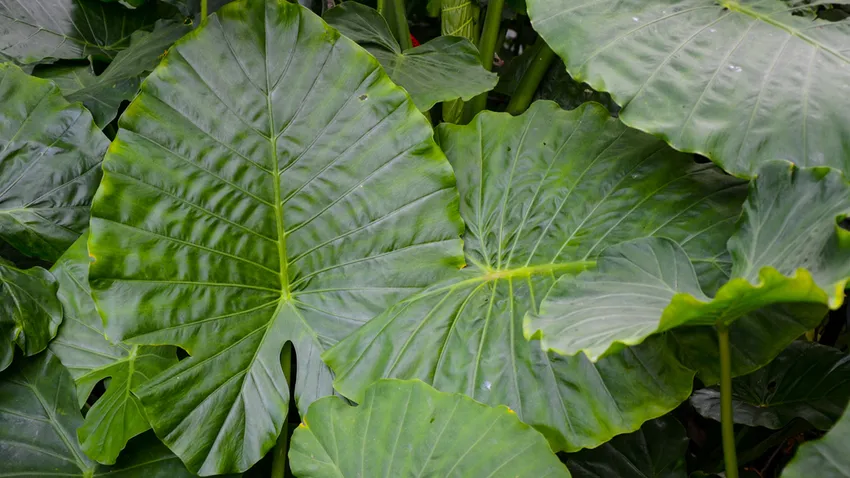 Podemos multiplicar la alocasia sacando los hijos, aunque en este caso lo vamos a dejar. En la periferia plantamos las esparragueras, que son plantas verdes muy característicos con bulbos para asegurar su hidratación y no necesitan exceso de agua. Plantamos en los tres vértices de las alocasias las alegrías guineanas de color blanco. Una combinación perfecta con el verde de la esparraguera y la majestuosidad de las hojas de la oreja de elefante.