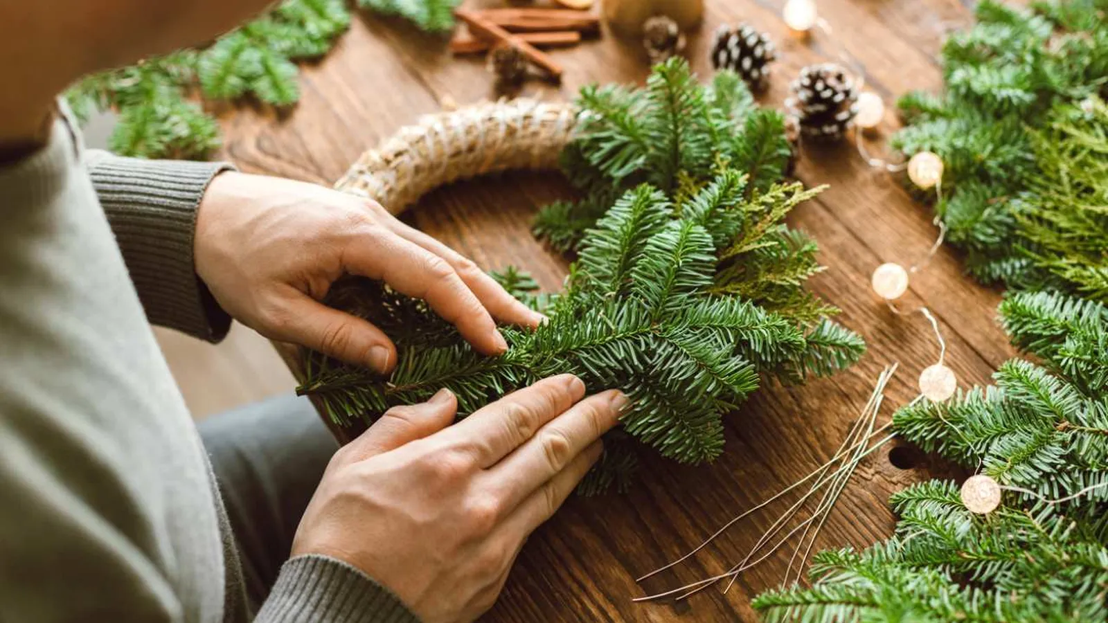 - Ramas de pino o abeto : Dan volumen y el típico aroma navideño.