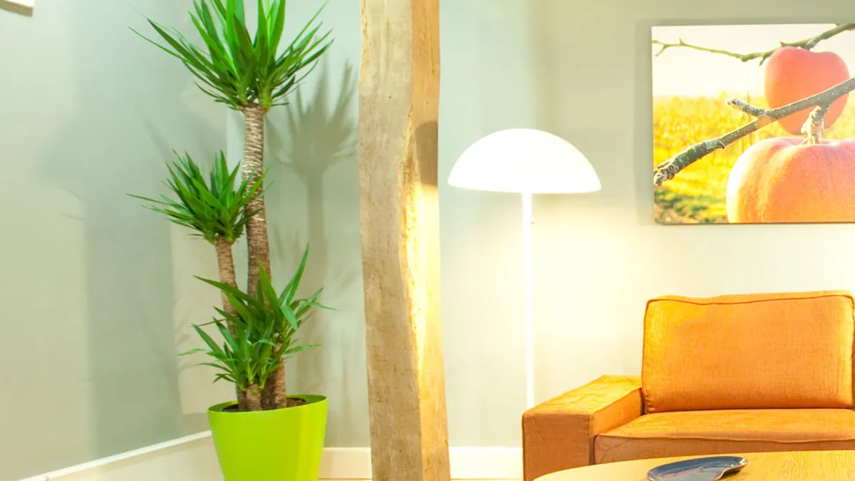 Finalmente, nos decantaremos por una yuca de tres troncos, que combinará perfectamente con el contenedor en el mismo color y la estancia en color azul claro. Una vez elegida la planta, el siguiente paso será plantar la Yuca.