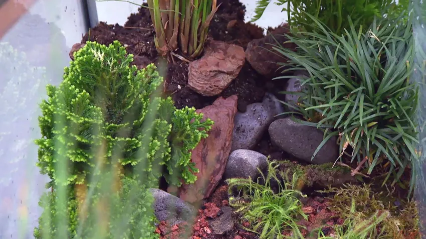 Para terminar realizaremos un buen riego de la composición y llenaremos el recipiente que queremos que sea el estanque. De esta manera lograremos que el interior de la pecera esté suficientemente húmedo para que puedan sobrevivir las plantas. Así tendremos unas condiciones de alta humedad en el ambiente y en el sustrato.