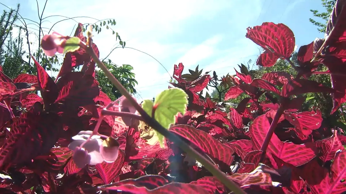 Entre estas plantas vivaces se intercalaron ciertas plantas anuales como es el caso de la ardisia. Se caracteriza por sus tallos rosas, casi fucsias. Sus hojas tienen manchas de distintas tonalidades. Mirándola al contra luz se agudizan todavía más esos matices y colores rosas intensos.