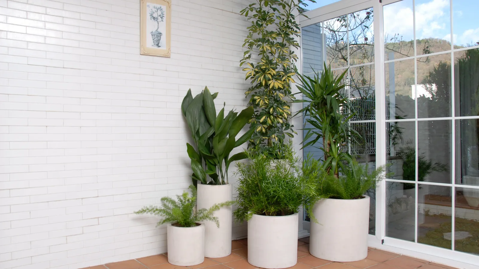 Composición con plantas para terraza cerrada orientada al norte