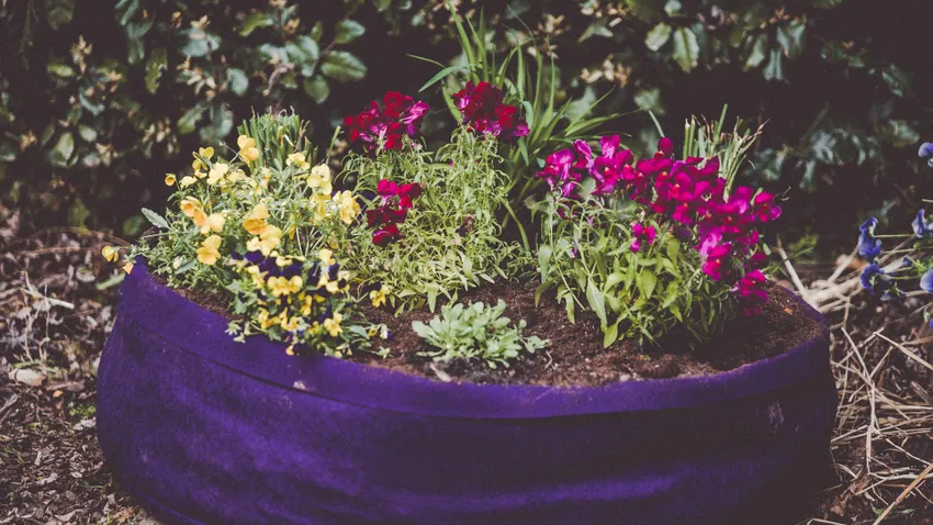 Cultivar plantas aromáticas y flores comestibles en tiestos de fibra