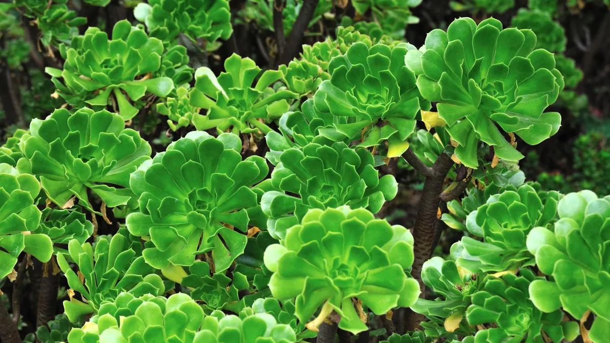 El aeonium es una planta crece de forma espontánea en las Islas Canarias, donde se reproduce y hasta llega a crecer sobre los tejados. Hay distintas variedades, de hoja rojiza, verde...