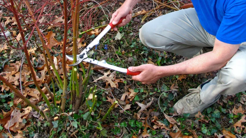 La poda del cornejo consiste en eliminar todo el ramaje y rebajar el arbusto a unos 20-30 centímetros de altura del suelo. Gracias a esta poda drástica, el arbusto está obligado a crear nuevos chupones o brotes vigorosos todos los años. Esto provocará la aparición de hojas de grandes tamaños muy decorativas y la creación para finales de verano de nuevos vástagos vigorosos cuyas cortezas, tras la caída de la hoja y con los primeros fríos, adquirirán tintes espectaculares que pueden variar del amarillo, pasando por el naranja y llegando al rojo. Así, se lograr que estas ramas le den un toque decorativo al jardín en los meses de invierno.