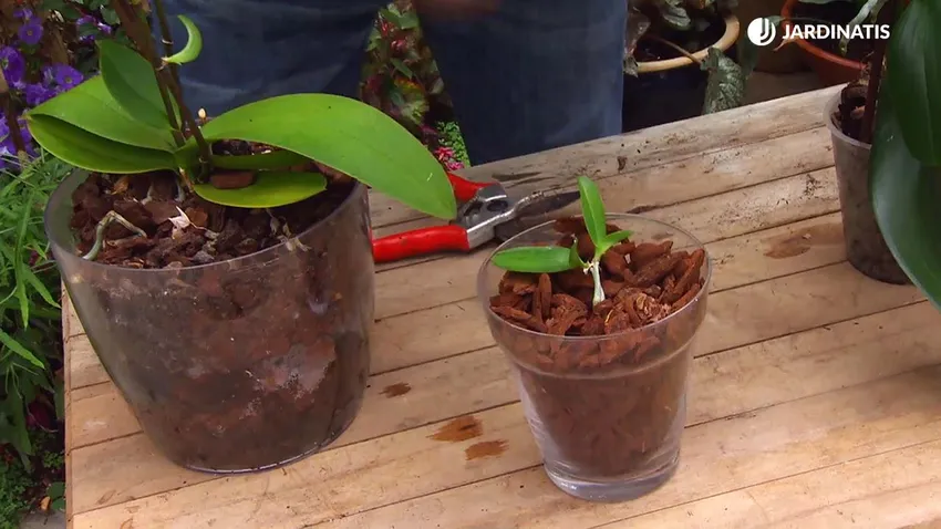 Cuando esto ocurre, puedes cortar la planta por el punto donde está unida al tallo floral y, así, dispondrás de una nueva orquídea.