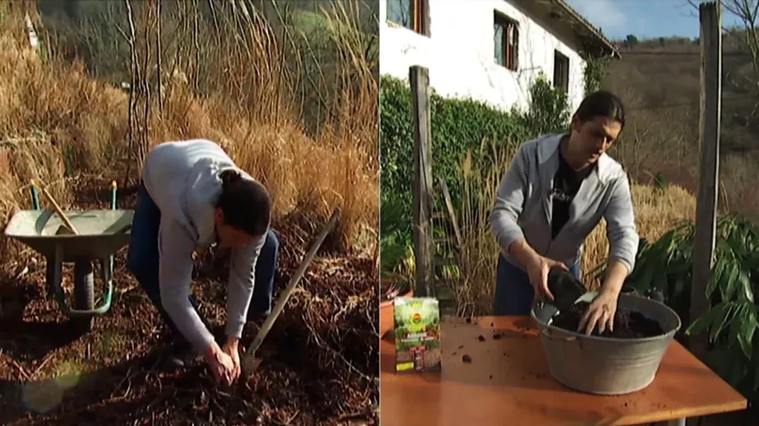 En la base hay una mata de hojas y, por lo tanto, tendremos que extraer ese cacho con sus correspondientes raíces.