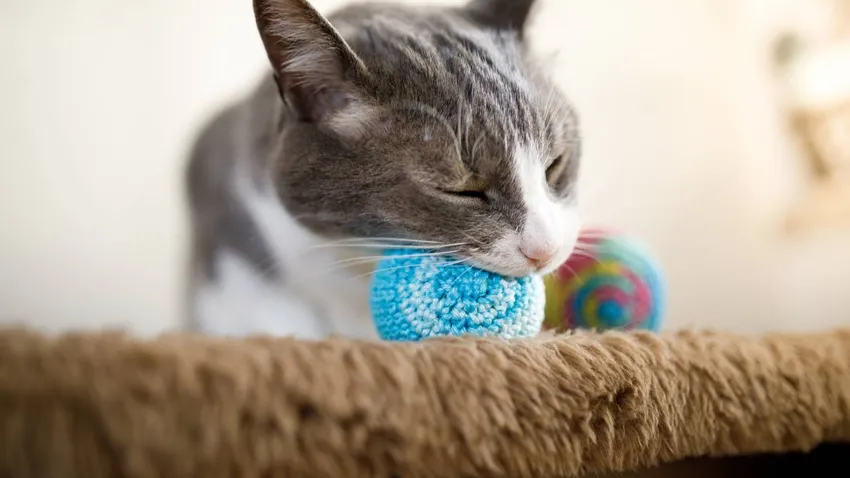 Un producto fácil de limpiar y duradero, con base ergonómica y amplio cojín. En la parte superior cuenta con un estimulador de encías y hierba gatera.