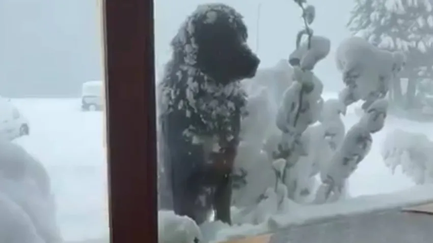 La gran travesía de Rolo, el perro que cruza diariamente la nieve en busca de comida