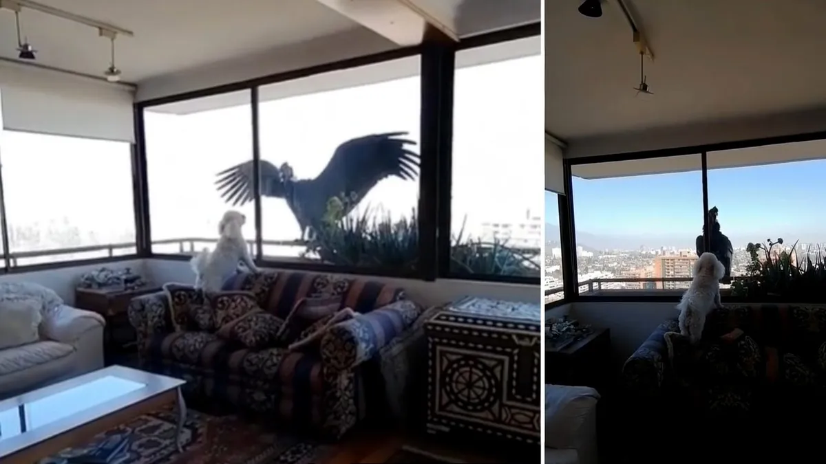Dos cóndores aparecen en su ventana y su caniche reacciona como un verdadero guardián