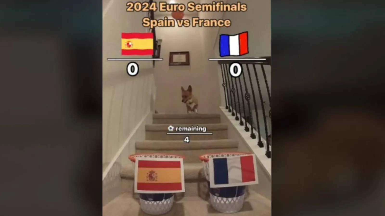 A las 21h del 9 de julio de 2024 se juega la primera semifinal de la Eurocopa 2024 que se celebra en Alemania. La juegan la España de Lamine Yamal y Nico Williams, frente a la Francia de Mbappé y compañía. Habrá que esperar a eso de las 23h para conocer el ganador, pero el perro Perry ya lo sabe.