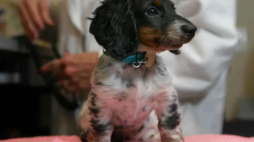 La primera revisión de un cachorro suele realizarse aproximadamente a los 2 meses de edad. En ella se realizan algunas pruebas rutinarias como la revisión de los ojos, los dientes y los oídos, el vientre, la piel... También se toma la temperatura del cachorro, que siempre supera en 2 grados la temperatura de los humanos, y se realiza una auscultación.